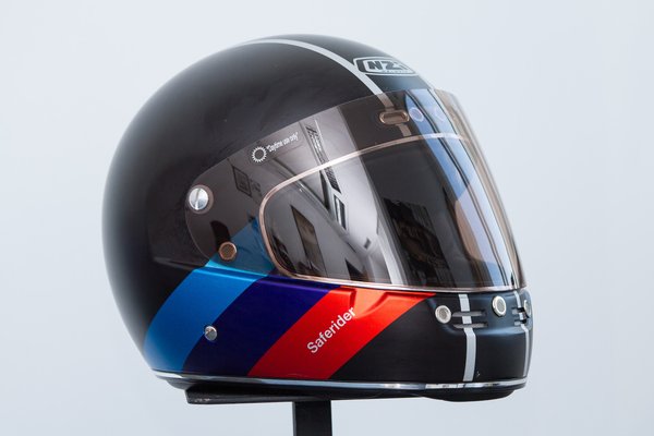 Az NZI pedig nem hagyta ki a ziccert, és a belépő szintű sisakok, és az egyébként jó áron mért karbon versenysisak mellett húsbamarkolóan gusztusos vintage bukókat is a piacra dobott. A Street Track a full face bukójuk, a 2 B-Safe Rider pedig a fényezés neve - és most tényleg fényezésről beszélünk, nem matricáról, vagy fóliáról. Ez bizony szépen fújt festék, és te jó ég, mennyire szép munka.