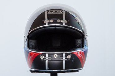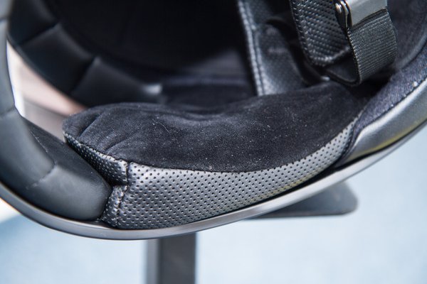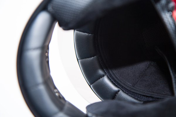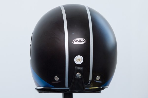 De nem csak a fényezés jó, hanem maga a sisak formája, állítólag a legelső NZI bukóról mintázták. Ráadásul kicsi, mármint a külső átmérője egészen szerény, ma már egy átlagos M-es sisak is akkora, mint egy hidrokefál az Alföldről, a felnyitható állúak pedig még nagyobbak, ez viszont kívülre akkora, mint egy XS-es zárt bukó. Két héjméretben készül, biztosra nem mondanám, de szerintem az M-es még a kisebb héj, mert el nem tudom képzelni, hogy ebbe a térfogatba egy XXL-es belső is elférjen. A kisméretű külső héj velejárója, hogy belül kevés a szivacs, tehát ha nem passzol fejedre, akkor kevés az a puha réteg, ami kiegyenlít.