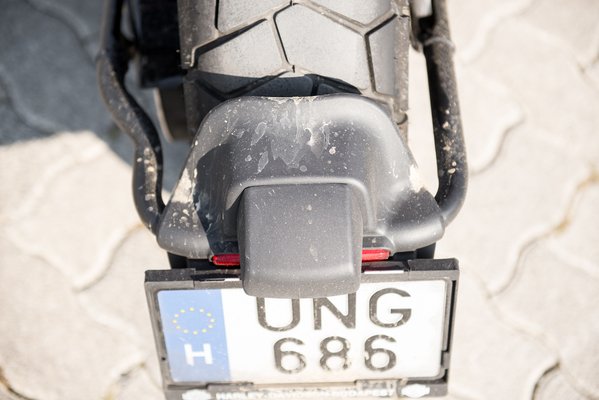 Van még egy lezáratlan ügy: a rendszámtartó. Tomi barátom egyből levonóhorgozta, és erős felindultságban követelte az eltüntetését. Giga Csabi is húzza rá a száját: náluk majdnem minden motoron oldalra, állítva kerül a rendszám. Azt mondja, eddig senkinek semmi gondja nem származott belőle, de én nagyon nem szeretek muszájból rendőrökkel beszélgetni az út szélén. Ráadásul nézegettem a képeket az amerikai motorokról, ahol nincs ilyen rátét, de nem tudom, nem lesz-e nélküle túl rövid a Malac. Ráadásul ez egy olyan rendszámtartó, amire rá lehet állni. Akár ketten is. Max a felső, műanyag részt cserélném valami nem tudom mire, horpadt bádogra, vagy ördög tudja.