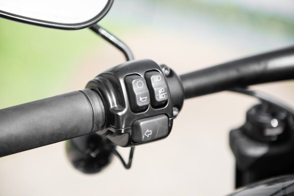 Az ergonómia vegyes. Az üléshelyzet bevált, a kormány kényelmes, minden fasza, tényleg szívem szerint éjszakára se szállnék le. A kapcsolók viszont szerintem szarul vannak elrendezve. Ezt onnan tudom, hogy amúgy nagy indexelő vagyok, autóval is, robogóval is, motorral is, akkor is, ha nem látok a környéken senkit, mert ugye egy vödörrel a fején az ember sosem tudhatja. Na, a Harley indexei olyan hülyén vannak, hogy eleinte csak a jobbot hanyagoltam el, mert ugye minden gázmarkolat-állásnál máshol lesz, aztán lassan a balt is. Tróger módra indexelni nem jó, valahogy majd megpróbálok visszaszokni. A dudagombot is nehezen érem el, mondjuk a dudának a hangja is olyan nyomorult, hogy cserére szorul. A váltó jó, a hátsó fék pedálját állíttattam kicsit magasabbra. A hátsó futómű előfeszítését óvatosan vettem egyre puhábbra és puhábbra, most jó.