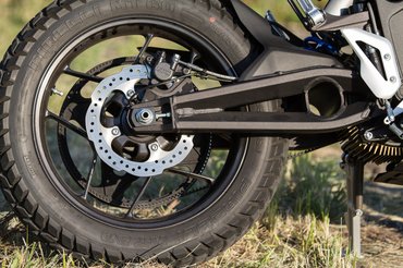 Egyébként hatalmas legó az egész, a lámpa ugyanaz, mint ami az első generációs Yamaha MT-03-on volt, a tükrök az Aprilia Tuono 1000R-rel egyeznek, és ha van internet-hozzáférésed és némi türelmed, az indexeket, a rendszámtábla-konzolt és úgy általában mindent ki lehet túrni, hogy mivel egyezik. Ez egyébként nem baj, így lesz egyszerű és olcsó a pótlásuk. Ráadásul a Zero DSR-hez igényes elemeket válogattak össze, például gyárilag fémfonatosak a fékcsövek, és olyan apróságokra is figyeltek, hogy ne kelljen szégyenkezni a váz hegesztései miatt.