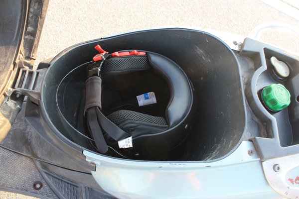 Praktikuma nem csak abban nyilvánul meg, hogy városban nagyon könnyű vele manőverezni. Az ülés alatti tároló mély, és a sisak is bőven billegve fér bele. Egy lazább vasárnapi bevásárlást simán beleraktam, a karton vizek meg elfértek a nagy taposólemezen. Zárt helyen egyszer-egyszer kipróbáltam utassal is, sőt még én is voltam rajta utas, és annyira nem zavarta össze. Hátra főleg a bőröndömet spanifereztem fel, aminek nekidőlve kényelmesen felhajókáztam Esztergomból Győrbe.