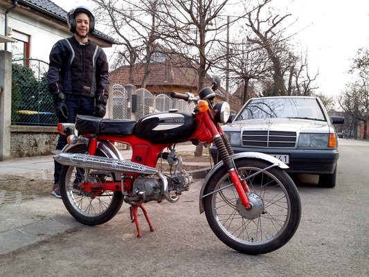 Már írtam egy korábbi Sebesség oltára-posztban, hogy az imolai börze idejére mindketten kitaláltuk, mi volna a jó nekünk, de mindkettőknél akadtak esetleges kivételt jelentő elhajlási lehetőségek. Bálint megemésztette, hogy négyütemű motor kell neki, de ha már, akkor legyen öreg és érdekes – és rátalált a kéthengeres Honda CB125T-re, ami 17 lóerős, tehát éppen tudja a 0,1 kW/cm3 határt – 12,49 kW-os ugyanis... Tényleg izgalmas gép, motornak néz ki, szexis Comstar kerekekkel, a teljesítményhatárt a plafonig kihasználja, elbír két embert (ugyanolyan erős, mint a 250-es Honda Spacy-m!), s úgy hírlik, még tartós is, ha cserélnek benne rendszeresen olajat. Ha pedig nem talál ilyet, vagy valaki nagyon jó árat villant Imolában, akkor esetleg egy Gilera Giubileo 125-ös, Morini Corsaro 125-ös vagy hasonlóra elcsábul.