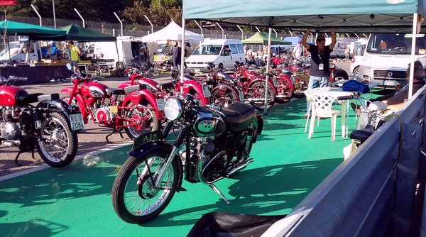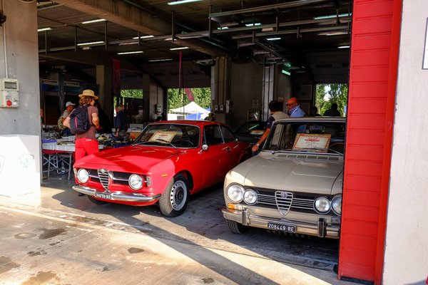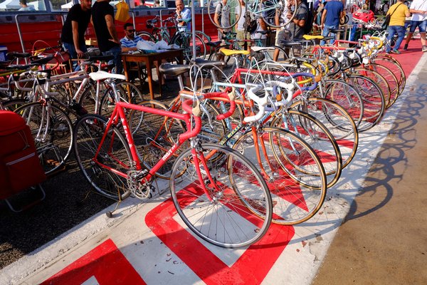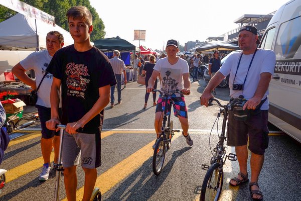 Elég korán volt, kilenc lehetett, az olaszok később kelnek, mint mi, gondoltam, a tömeg nyomását majd tizenegy tájban kapjuk meg. Egyik-másik standon még ponyva is hevert, nem siettek a nyitással. Mivel huszonkettedik éve (de persze nem ennyi alkalommal) járok a börzén, ezért pontosan tudom, hogy a hely bejárásakor nem szabad leakadni a boxutca mögötti, meglehetősen dús kincseket hordó részen, mert odakint a pályán ugyan kicsit hígabban kapja az ember a kínálatot, de sokkal jobbak az árak, hangulatosabb a terep is. Ezért itt csak felületesen szabad mozogni, nagy sebességgel. Végigverettünk a sorok között, de csak egy darabig sikerült, mert Bálintot sokkolta a látvány. Lépten-nyomon megállt fotózni, árakat kellett kérdezni neki, aztán már én is elkezdtem érdeklődni – menthetetlenül belefulladtunk a jóba. Mint mindig. Már az elejébe.