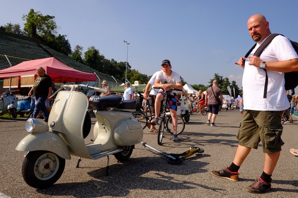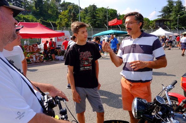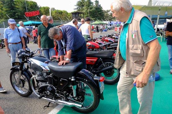 Nyolcezer, mondta a bácsi, aki egy zsíros füzetben, hosszú listából kereste ki a motort. Documenti in regola, tehát minden papírja rendben. Nyolcezer... Te jó ég, nálam most itt van hét és fél. Szinte meg tudnám venni, és akkor nem jönne hosszú futkosás a cuccok után, a szívások, a járkálás az esztergályoshoz, hogy mégiscsak nagyobb gallérral kellene az az agy... Csak így, rá lehetne ülni és menni vele. Sose voltam még ennyire közel ahhoz, hogy megvásároljak egy kész veteránt. De mivel ez láthatóan egy kereskedés volt, aminek a portékáival addig járják Európa börzéit, amíg el nem kelnek a cuccok, ezért alkura sokkal kisebb esély nyílt, mint a kicsi, reménykedő, tűző napon fővő többi árusnál. Tényleg csak az érdeklődés szintjén kezeltem a dolgot.