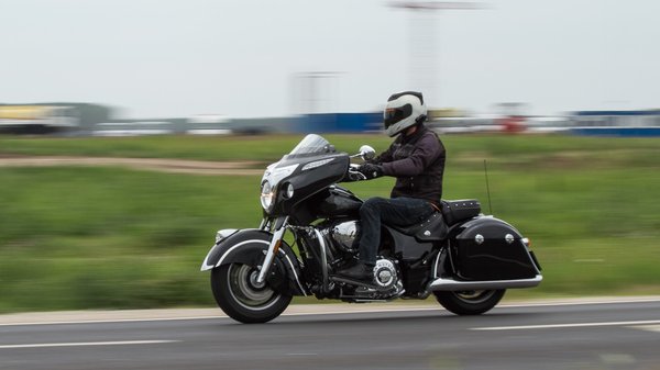 A nyereg kényelmes, az üléspozíció kellően laza, viszont a trepnik elég mélyen vannak ahhoz, hogy már egy egyszerű forgalmi szituációban, mondjuk egy körforgalomba behajtásnál leérjenek. A futóműben egyébként sokkal több van, mint amit a felépítmény enged, ezen a téren a konkurensek előtt jár – ezt már a Victory-k is tudták, úgy tűnik, az Indian megörökölte ezt is. A rossz utakon meglepően könnyeden fut, a kisebb úthibákon egyszerűen átlibben, kanyarban mégis stabilan fekszik, meghazudtolva a 370 kilós menetkész tömeget.