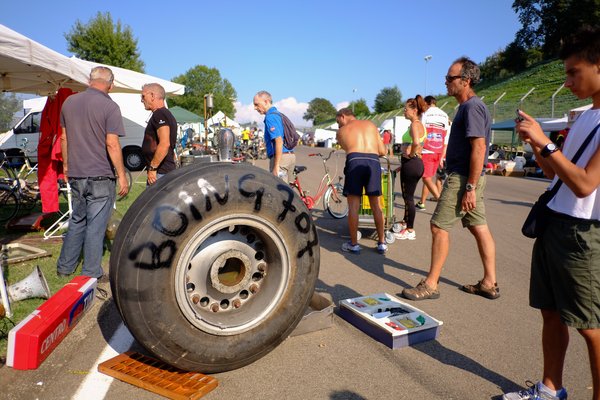 Tovább, caplattunk felfelé a dombon a forróságban, majd átbuktunk a tetőn, hosszú lejtő következett, innentől lendületbe jöttek a bringák, rollerek alattunk, száradt a verejték, szűnt a lüktetés a fülben. Ejnye, bazi nagy ez az Imola. És azon a hátsó lejtőn szemlátomást egész rozsdás Gilera-üzemek működtek. A gravitáció áldását a fék sűrű használatával szórtuk a szemétbe, de meg kellett állni. Mindenhol. Ez itt 1200, papírral, de annyira nem szép, amaz 900, de nincs papírja, emez 700, de csak targája és egy fénymásolt kivonási papírja van, nekünk meg libretto (forgalmi) és CDP kell minimum, esetleg foglio complementare.