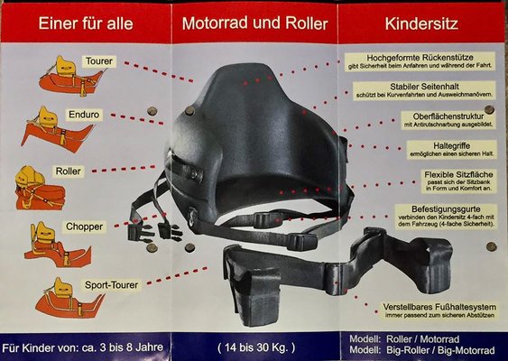 Németországban sokan használják, mert ugyan nem kötelező, de ajánlott, mivel biztonságosabb. Ott a szabályozást igazították hozzá, és ha mondjuk a gyerek lába nem ér le a tartóra, például egy nagyobb testű túraendúrón, akkor elfogadják a gyerekülés saját lábtartóját. A hivatalosan, minősítéssel ellátott motoros gyerekülésként árult eszközök - nem az otthon barkácsolt kísérletek - teljesen elfogadottak.