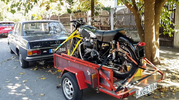 Trélert szerezni lehet. Nekem ez jól szokott menni, mert sok a barátom, közöttük is sok, aki motorozik. Másnak talán nem lenne olyan egyszerű, de én ilyenkor felhívom Zöldi, Bakos Ricsi vagy Szabó Endre barátomat, aztán végül mindig akad valami guruló zsámoly, amire feltolom a vasat. És bár gyűlölöm azt a randa nagy vonóhorgot az állólámpás Mercimen, mert ami egy lerottyant dízelen még elmegy veterán korban is, az egy hathengeres, diplomatakék suhanógépen már annyira nem kúl, de ezt a békát lenyelem – elvégre az élet úgy jó, ha nem gördítünk feleslegesen nagy akadályokat a zajlása útjába. A gond a logisztika. Meg az idő. És nekem mindkét probléma előjött, amikor hazahoztam az AJS-t az imolai veteránbörzéről és úgy döntöttem – levizsgáztatom.