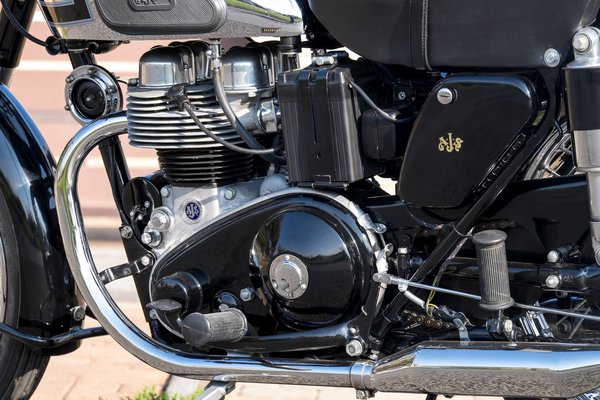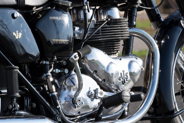 Tény, amikor az AJS ezt a motort gyártotta, már nem volt akkora legenda a márkanév, mint a dicsőséges harmincas években, de a Model 20-at, pláne ebben a kisebb, félliteres kivitelében kifejezetten barátságos, megbízható, tartós szerkezetnek írták az újságok. Nem volt ritka, hogy 70-100 ezer mérföldeket elfutottak felújítás nélkül, a főtengelyeket pedig jellemzően csak a későbbi, nagyobb, 600-as, 650-es változatok törögették, az meg, hogy két, különálló elektromos rendszer van benne – egy mágnesgyújtás a szikrához, egy dinamós-akkus kör pedig a lámpákhoz és a dudához, csak növeli a megbízhatóságát. Oké, lehet, hogy vakon, de hazaérsz vele éjjel is.
