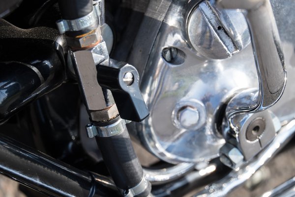 De öröm a bosszúságban, hogy eddig egyszer sem felejtettem el kinyitni az utólag beépített olajcsapot, mert ha úgy történt volna, már lenne egy szépen csillogó, megszorult AJS twin-blokkom egy szépen csillogó, használhatatlan motorban... Erre az olajcsapra pedig azért van szükség a régi, száraz karteres motorokon, hogy állás közben, a jó eséllyel már kicsit eresztő szelepű olajszivattyú bele ne engedje a tartály összes olaját a forgattyúsházba, mert rossz esetben olyankor már át sem fordítható a főtengely és le kell ereszteni az összes olajat, jobb esetben csak gyilkosan nehéz berúgni a szerkezetet, és ha elkapja, borzalmasan füstöl egy csomó ideig.