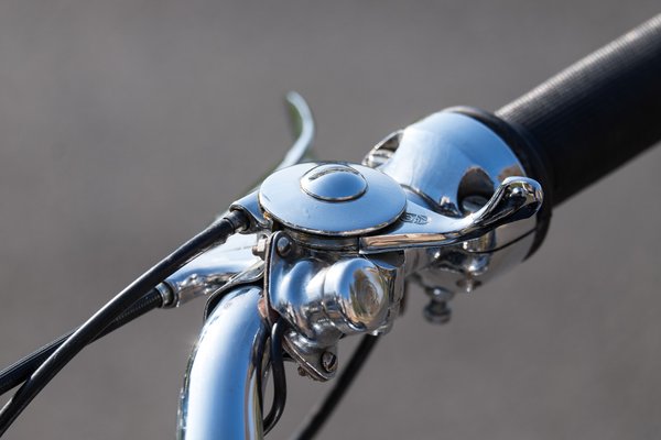 A Chronometric lelkének finom világából az ember menet közben csak annyit vesz észre, hogy a mutató nem mászva teszi meg az útját fel és le a skálán, hanem darabosan, ugrálva. Az ugrásokhoz egyébként állítólag 0,6 másodpercre van szüksége a szerkezetnek, ami a mai, számítógép-vezérelt, milliszekundumokban mért világban örökkévalóság, de a használat során valójában egész jól működik és nagyon szórakoztató. Meg az, hogy effektíve egy Jaeger-karóra van a motoron, és látszik is, hogy ott valami fura módon teszi a dolgát... Lehet, hogy negyven éves Seiko digi-kvarcórát hordok a csuklómon, de a bennem lappangó sznob ilyenkor azért előbújik a barlangjából. Mennyire csodás már csak ez a pici részlet is. És mennyi ilyen van ezen az AJS-en. Nem tudok betelni vele.