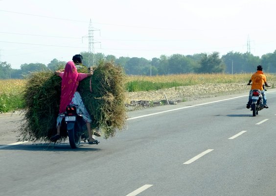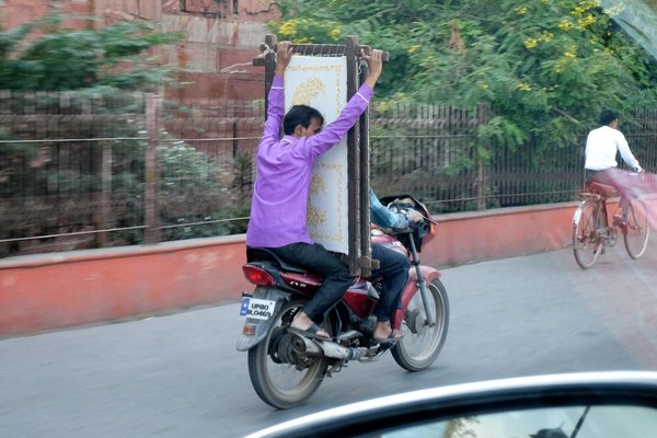 A nők java része a mai napig száriban jár, de az a szép, ám a mozgást erősen korlátozó ruhadarab lehetetlenné teszi a motorra ülést normál módon. Oldalvást csücsülnek hát, ami a gépek pocsék futóműve, a rettenetes káosz, a gödrökkel Cerbona-szelet állagúvá kátyúsított utak hatásaival kiegészítve öngyilkos merényletté tesz minden utazást, de legalább a legtöbb motor hátsó kereke mellett bekapás ellen védő rács van, megelőzve a hitves Isadora Duncan-szerű megfojtását, illetve bedarálását.