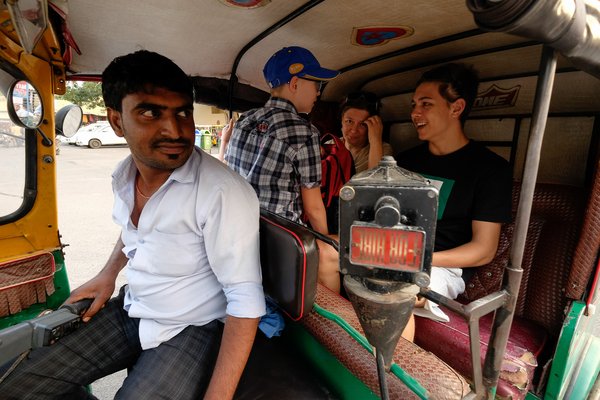 Tuk-tukból Indiában is többféle van, de mind az eredeti Piaggio-koncepció sarja, még ha erős variációkkal is. A gázzal hajtott újabbak farmotorosak és LPG szárnyán repülnek, ezeket a zöld-sárga festésről lehet megismerni, legalábbis Radzsasztán-szerte (illetve a szomszédos Delhiben és Agrában, ahol szintén jártunk). A régebbi típusúak jellemzően feketék, azokat leginkább borzalmas hangú, Greaves márkájú, egyhengeres (egyébként 325 köbcentis, Lombardini-származék) dízelmotor hajtja a vezetőülés alól, a hátsó kerekekhez kinyúló, pálcikavékony kardánon át. Ezek között is van keskeny, hosszú, az elejétől hátrafelé lejtős tetejű, régi, amiben legalább a lábtér tekintélyes, illetve tömzsi, szögletes fajta, ami a sokkal későbbi Ape-alapjaira épül. Ezeken hátul vagy Piaggio Ape, vagy Atul vagy egyéb, préselt, nagy felirat van, és az a zseniális bennük, hogy olyan szélesek, hogy azokban mind a négyen tűrhetően el tudtunk ücsörögni. Amikor erre rájöttünk, lehetőleg mindig olyan tuk-tukot hívtunk.
