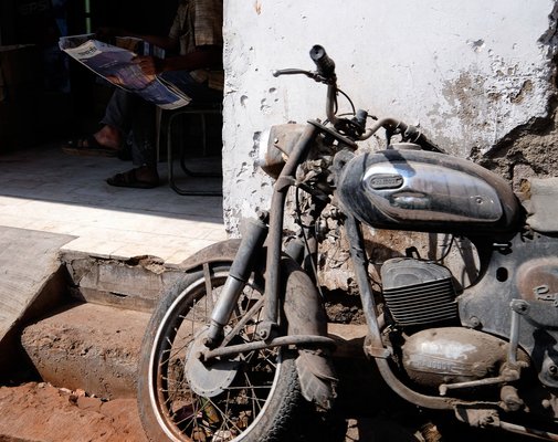 Kétütemű Bajaj-robogókat (neked és nekem Vespa PX150) már alig látni a forgalomban, a motorok többsége négyütemű és tizenöt évnél fiatalabb. Nagyon úgy tűnik, hogy itt előbb törik ketté villa, váz, kormánynyak, mint hogy elkopjon a henger. Indiában máshogy pusztul, amit használnak. A szmog nem tőlük van, hanem attól, hogy ilyenkor, monszun után hónapokig meg se rezzen a levegő, eső sincs, viszont például Delhi környékén égetik a tarlót, az utcákon a műanyag szemetet is. Delhi környéke indiai léptékkel pedig annyit tesz, hogy kb. fél Magyarország. Ez egy kontinensnyi ország másfél kontinensnyi emberrel, mások itt a dimenziók, barátom.