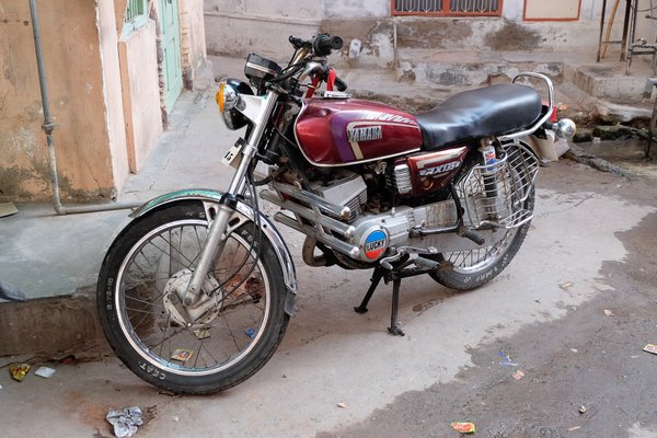 Oké, ez a Sebesség Oltára, tehát legyen végre szó a motorokról is – de persze a tuk-tuk is motor, szerintem. Indiában, legalábbis Radzsasztánban és annak környékén, ahol jártunk, borzalmasan sok ugyan a motorkerékpár, de összesen talán tucatnyi alapmodell jelenti az utcai felhozatal bő 99 százalékát. A gépek java részét egyhengeres, 100-150 köbcentis Hondák (már ez is egy teljesen indiai tulajdonú leányvállalat), Hero Hondák (a régebbi, indiai együttműködés alapján gyártott Hondák), illetve ma már csak szimplán Herók (amelyek szintén Hondák, de ezt az ágat is átvették az indiaiak, mellesleg az ilyen motorok tisztán Hero-feliratosak, s a legújabbak) alkotják. Fentiek nagyjából mind az elmúlt tizenöt évben készültek, technikailag pedig hasonlítanak egymáshoz; mind négyütemű, léghűtéses, váltós, bár két ágra bontja őket, hogy egy részük a legendás, fekvő hengeresből származtatott változat, másik részük meg álló hengeres.