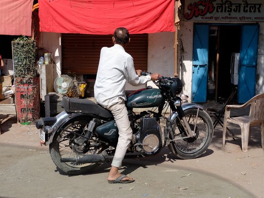 Azok is jók. Sokkal nagyobb motorok, mint bármi, amit az utcán látsz, a hangjuk, az a töfögő, püfögő egyhengeres Hofherr-traktorszerű huppogás messze elhallik a fogalom szörnyű zajában, ráadásul súlyosan kellemes is a fülnek. Lerohadva egyet se láttam az út mentén, pedig azért akadnak köztük alaposan elhasznált, öreg darabok is, mutatva a megbecsültségüket. Mivel Udaipurban, ahol a Bálint fiam üléspróbát vett egy 350-esen, azonnal el akarták adni nekünk a szóban forgó mocit, méghozzá meglepően jó áron (80 ezer rúpiáért, azaz 320 ezer forintért), megnéztem ezeknek az értékét az indiai OLX-en is. 60 ezernél indulnak (240 ezer forint), s azok egész tűrhetően néznek ki, ilyen 10 ezer kilométerekkel az órájukban. Már csak három kérdést kell feltennie az olcsó Enfieldre felhorgadt motorosnak: vajon az indiai OLX-árakból lehet-e alkudni még; vajon az indiai lódít-e a kilométerfutással kapcsolatban; mennyibe kerülhet Magyarországra behajózni, majd letípusbizonyítványozni egy ilyet? Szóval, lehetnek buktatók.