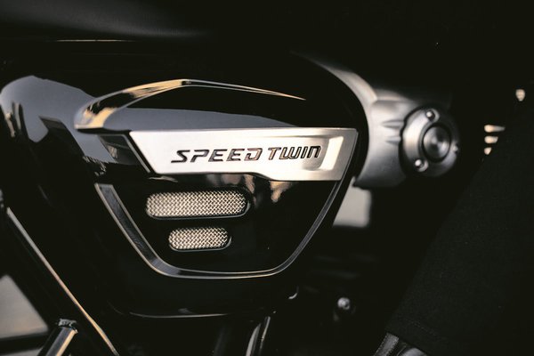 A blokk régi ismerős, ugyanaz a soros kéthengeres dolgozik benne, mint a Thruxtonban is, de átdolgozták, magnézium deklikkel és a kuplung módosításával 2,5 kilót faragtak rajta. Úgy hangolták, hogy 97 lóerőt (@6750) és 112 Nm-t (@4950) adjon le. Ehhez könnyebb főtengelyt és nagyobb kompressziójú hengerfejet használtak.