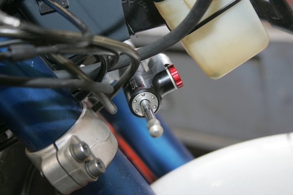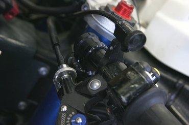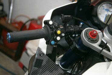 Az esések miatt szokták versenymotoroknál a gyári kapcsolókat ilyen színes gombokkal ellátott konzolra cserélni. Ezeknél a kapcsolók háza alumíniumból van, egy rondább becsapódásnál sem robban szét, így ha a kormány törik is, tíz perc alatt visszaépíthető a betárazott pótalkatrészekből - a gombokra pedig bármilyen funkciót rá lehet tenni.