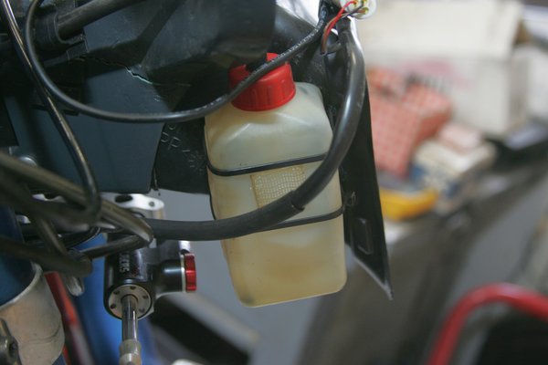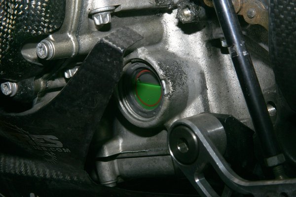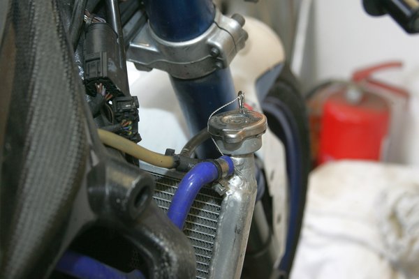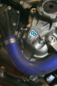 A vízkör ezen felül további érdekességeket is rejt: a hűtőkör gyári tágulási tartályát kidobták, helyette két utólagos tartály van: egy a fejidom mögött, egy pedig hátul, így két helyre tud tágulni. A versenymotorok hűtőrendszere ugyanis zárt, nem folyhat ki belőle semmi - bár a versenyek előírása eleve csak desztillált vizet enged meg hűtőfolyadéknak, az sem kerülhet a pályára. Ezért is van, hogy a hasidom is speciális, előírás szerint öt liter folyadékot meg kell tartania, tehát ha valamiért kiesik alul a motorolaj, az sem keni végig a féktávot. És van is a hasidomon egy dugó, amivel le lehet engedni belőle a folyadékot.