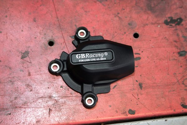 Az összes idom szénszálas, ezt egyébként nem minden bajnokságban engedik a szabályok, az IDM-ben és a magyar bajnokságban például szabad, az Alpok-Adrián pedig nem. A lengővillát és a vázat is karbon elemek védik, amelyek egy kavicságyas fetrengésnél sokszorosan behozzák az árukat, a blokkvédőket viszont cserélni kell. Ezek például nem látták el maradéktalanul a feladatukat, az egyik dekli sérült. A világbajnokságon egyébként csak fém védőelemek engedélyezettek, egy kivétellel, a GB Racing műanyag cuccai megkapták a FIM homologizációt. Erre is ilyenek kerülnek fel, már ott voltak az asztalon az új elemek - nem a jövőbeli VB-s szereplés miatt, hanem mert Gábor szerint már sokszor bizonyítottak, nagy terhelést is elviselnek a motorblokk károsodása nélkül, ezért esett rá a választásuk. Egy ilyen védő fele annyiba kerül, mint a dekli, hívhatjuk gyorsan megtérülő befektetésnek.