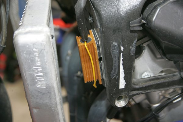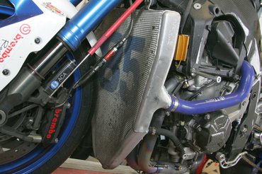 A hűtő mögötti aranyszínű tömböt előtétellenállásnak hívják, kimondottan versenymotor alkatrész, amelyre a szabályrendszerek sajátosságai miatt van szükség. A Superbike VB-n előírás, hogy a motort segédeszközök nélkül is be lehessen indítani. Ezért nem dobható ki belőle a komplett generátor, legfeljebb csökkentett teljesítményűt használhatnak. Mivel lámpák nincsenek, és lényegében csak a műszerfal, az ECU és az injektorok vesznek fel áramot, így rengeteg felesleges energiát kéne elfűtenie a fesszabályzónak, ami előbb-utóbb túlterhelné - erre megoldás az előtétellenállás.