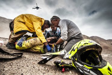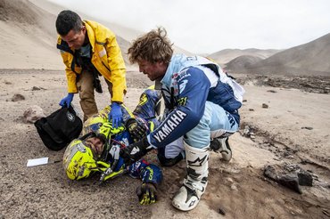 Sajnos megint kiderült, hogy a Dakarra irgalmatlan tapasztalat kell, hogy a versenyző be tudja osztani az erejét - az első öt napban végig csodáltuk a Sherco gyári versenyzőjét, az újonc Lorenzo Santolinót, aki top10-es időket tudott motorozni, aztán a hatodik napon túltolta: hatalmasat esett, helikopterrel szállították kórházba.