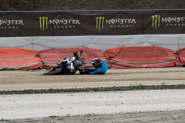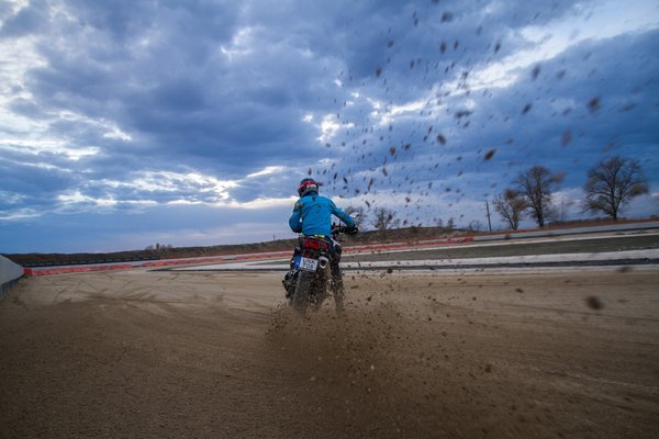 Mivel a 850 GS igazán off-road orientált modell a BMW kínálatában, jó ötletnek tűnt rögtön a vasadi flat-track pályán fújatni vele a földet. Mivel a műfaj királyától tanulhattam az alapokat, lazán gurultam be a döngölt oválba. A lazaság egészen az első kanyar közepéig tartott, ahol ki is esett alólam az eleje. Tanulság 1: ha a pálya egyik oldala száraz, attól a másik még át lehet ázva. Tanulság 2: mit sem ér a terepmotor, ha utcai gumi van rajta. Nem véletlenül lehet az extralistán rendes bütykös gumikat (Metzeler Karoo) kérni gyári szerelésként. Az utcai abroncsok (Michelin Anakee) barázdái az első kerékfordulatnál telirakódnak a nedves agyaggal, később néha még egyenesben is becsuklott a kormány. Iván szerint mégis megérte betakarózni az év képért – neki sárral, nekem a motorral.