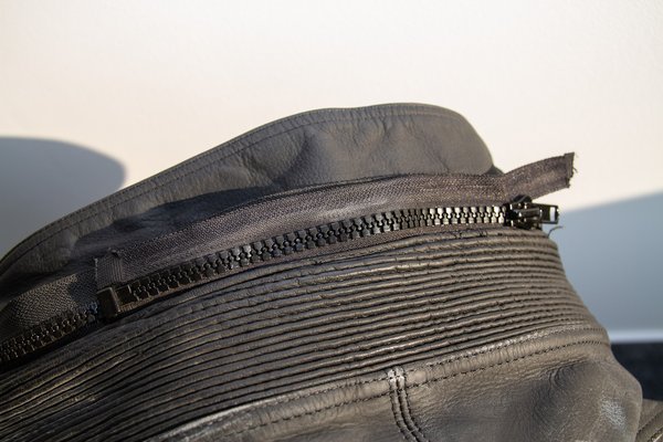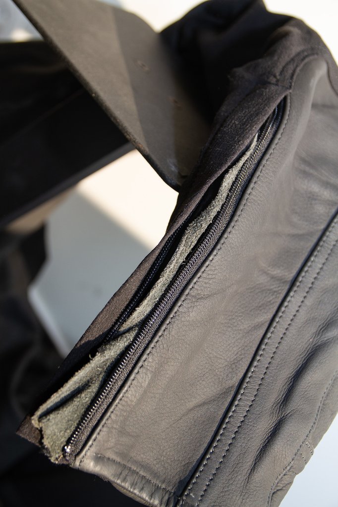 A megfelelő méret persze nem merül ki a hossz-derékbőség duónál, nálam a lábszárbőség szokott még a szűk keresztmetszet lenni a nadrágvásárlásnál. Nem gyúrok vádlira, de ez a nadrág is szűkebb volt nekem a lábszárnál, mint például a combnál. Szerencsére mindkét résznél kevláros sztreccs anyaggal egészítették ki a marhabőrt ott, ahol esés esetén nincs kitéve erős súrlódásnak az anyag, a combtőnél, vagyis combbelsőnél illetve a térdhajlatban. A nadrágszárnál elhelyezett cipzár így is sokat segít a fel- illetve levételnél.