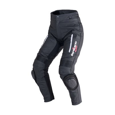 A védelemről az erős és kopásálló marhabőrön kívül a CE jelzéssel ellátott csípő- és térdprotektorok gondoskodnak, melyek cserélhetőek akár SAS-TEC betétekre is. A csípőt ütéstompító habbal erősítették. És persze még ott vannak a látványos térdkoptatók, melyek versenypályán kívül egyszerűen eltávolíthatók a tépőzárral.