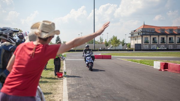 A Totalbike24 – ötvenese robogók ide vagy oda – veszélyes üzem, melyre megköveteltük a megfelelő védelemmel ellátott ruházatot. Mivel csak két héttel a verseny előtt kezdtem a robogós pályafutásomat, ezért ilyet én nem tudtam hirtelen leakasztani a gardróbom fogasáról. Kabátot, kesztyűt, gerincprotektort és sisakot még összedobtak nekem a kollégák, de megfelelő méretű motoros nadrágot és csizmát már nehezebb volt találni. Ivánnak jutott az eszébe, hogy felkérhetnénk a Shox-ot motoros üzletet ruházatom hiányzó darabjainak szponzorálására.