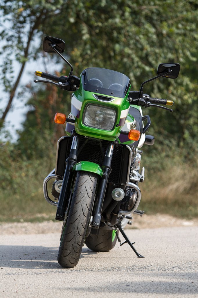 A többi retró big bike közül a ZRX-et a futóműve emeli ki - mind az első teleszkópvilla, mind a kétoldalra szerelt rugóstagok minden paraméterükben állíthatóak. Ennek ellenére többre számítottam - közlekedésnél kellemes, de amikor elkezdtem egy kicsit erőszakosabban kezelni, kanyarba tempósan beengedni, aztán a kormánynál fogva szinte feltépve, minél előbb, minél nagyobb gázt húzva kigyorsítani, hamar elbizonytalanodott és elkezdett nyúlósan hintázni. Könnyen lehet, hogy az elállított csillapítás miatt, de valószínűbb, hogy a futómű megérett egy alapos szervizre. Cserébe a borzasztó minőségű utakon sem volt fájdalmas.