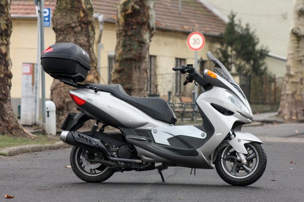 125-ös létére egész dinamikus, viszont pont kellően gyenge, hogy kanyarba ne okozhasson meglepetést egy nagyobb gázadás. A kereke ugyan kicsi, de a széles gumikkal rendesen bele lehet tenni a kanyarba, meglepően jól fordul. Annak ellenére, hogy hosszú és széles, könnyedén meg lehet fordítani egy sávban, nálam ügyesebb motoros még kisebb helyen is megoldja.