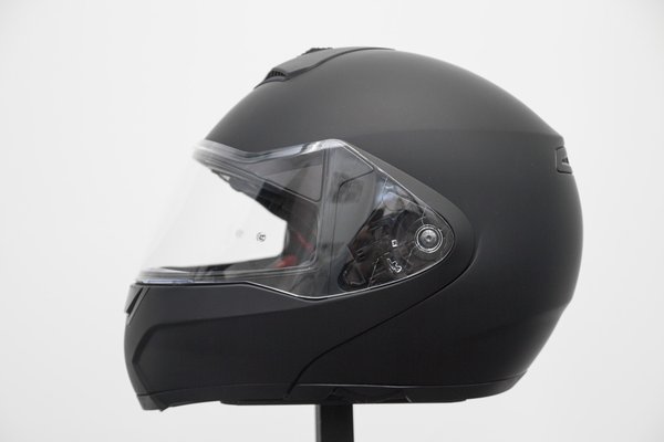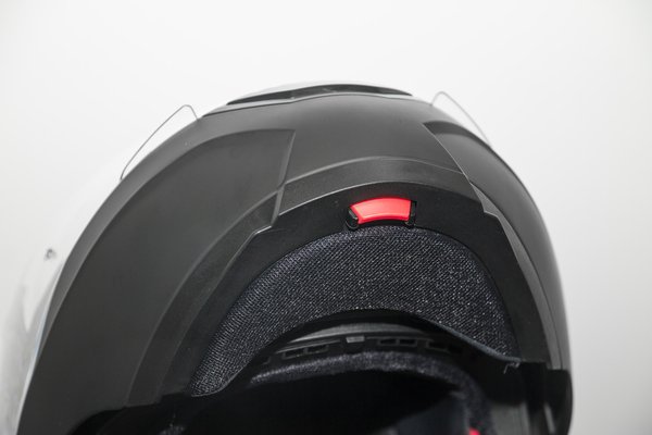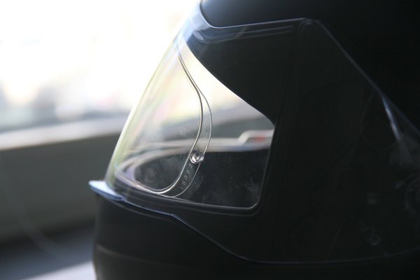Apró figyelmesség, hogy a plexin két kis pöcök van, hogy jobb és bal kézzel egyaránt kényelmesen felhajtható legyen. A jobbkezes nyitás motorozás közben egyébként viszonylag ritka, de időnként jól jön - igényesebb gyártók ezért szokták középre tenni a pöcköt, mert az ugye félúton van.