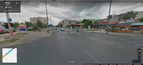Ma már van egy külön a kanyarodóknak világító villanyrendőr, de 2013-ig csak egy telizöldes lámpás kereszteződés volt. A haverom valamikor a kétezres évek első felében bucskázott át a Corsa motorháztetején, szóval minimum tizenöt éven át (1997-ben nyitott a Tesco a Fogarasin) törték ott egymást autósok és motorosok. Ennyi idő viszont elég volt és valaki rájött, hogy sajnos a magyar gépjárművezetők nagy része a KRESZ alapjaival nincs tisztában, nem szabad engedni nekik, hogy önállóan helyzetfelismerjenek. Ezért a 2014-es Google képen már ott a külön szerelt, a többinél jóval nagyobb lámpa, azoknak, akik a Tesco parkolójába akarnak bekanyarodni. Gondolom, azóta az ilyen balesetek is ritkábbak.
