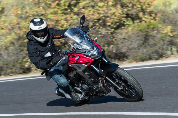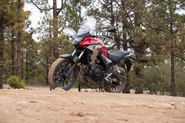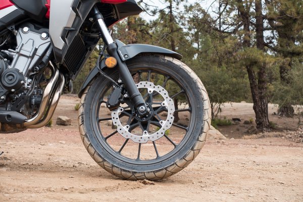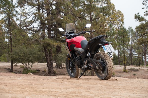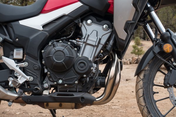 A kéthengeres teljesítménye nem változott, továbbra is 48 lóerős és 43 Nm nyomatékú, a csúcsok sem mentek arrébb (8600 és 6500/perc), viszont a nagyobb airbox, az átalakított szívórész és a módosított vezérlési idők miatt 3000-7000-es fordulat között egy hajszálnyival erősebb, viszont miután leadta a csúcsteljesítményét, hamarabb lekonyul. Meg nem mondom, hogy számít-e a 4% többlet a középső tartományban, viszont terepen egészen jól elhúzta hármasban a motort. Országúton pedig nagyjából mindegy volt - a CB500X továbbra is pörgős karakter, szereti a fordulatot, tempós menésnél nem érdemes beejteni 6000 alá.
