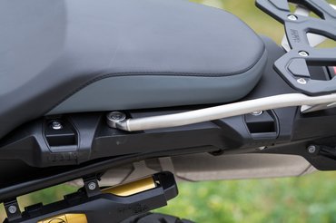 A túra-BMW-k legnagyobb királysága a Dynamic ESA – a félaktív futóműállító rendszer, amelyen a rugóelőfeszítést álló helyzetben a terhelésnek megfelelően beállíthatjuk a műszerfalról, utána pedig maga igazítja a csillapítást az útviszonyoknak megfelelően. És ha a közúti használatot nézzük, ez a csúcs. Amikor egy úthibához érünk, lágy, aztán kanyarban, féktávon vagy gyorsításnál villámgyorsan felkeményít, hogy megakadályozza a bólintást és a hintázást. A félaktív futóműveknél jelenleg nincs jobb, nem véletlenül használja ezeket a Ducati, a KTM és a Yamaha is a csúcsmodelljeinél. Pillanatnyilag az F 750 GS a legolcsóbb modell, amibe rendelhető ilyen, és ennél is csak a központi rugóstagot állítgatja a számítógép – az első villát pedig még szerszámmal sem lehet tekergetni, nincs semmilyen állítási lehetőség elöl.