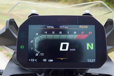 A műszerfal egy 6,5 collos TFT kijelző, és elég jó a felbontása is, a dizájn és az ergonómia sem olyan, mintha egy felső tagozatos számítástechnika szakkörön készült volna, logikus, áttekinthető, nem kell hosszan keresgetni benne a funkciókat – viszont ha már egyszer akkora, mint egy kisebb tablet, akkor igazán megoldhatták volna, hogy például a markolatfűtés fokozatát nagyító nélkül is le lehetne olvasni.