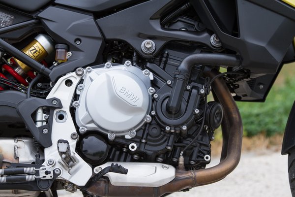 A váz mellett a blokk is megegyezik a testvérmodell F 850 GS-ével, tehát szintén 853 köbcentis, de míg a régieknél az osztrák Rotax volt a beszállító, ez már a kínai Loncintól érkezik. A fejlesztés viszont a németeknél zajlott, és nem féltek átemelni a tapasztalatokat, amiket a Husqvarna Nudával szereztek. A 700-as és 800-as GS-nél 360 fok volt a gyújtásszög, emiatt úgy járt és úgy szólt, mint egy bokszermotor, az együtt mozgó dugattyúk vibrációját pedig egy kiegyenlítő hajtókar oltotta ki. Az új 850-es soros kéthengeresnek viszont 270 fokkal tolták el a gyújtását, amivel már V2-t imitál. A rezonanciát sem egy lengő tömeggel ellensúlyozzák, hanem a főtengely elé és mögé tettek egy-egy kiegyensúlyozótengelyt.