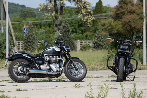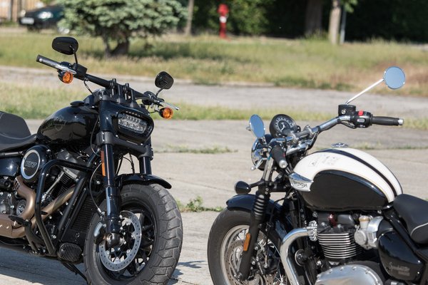 Amikor egyszerre járt nálunk a Triumph Bonneville Speedmaster és a Harley-Davidson Fat Bob, adta magát, hogy összepróbáljuk a kettőt, még ha a két darab hengeren és a cruiserségen nincs is közük egymáshoz. Mivel mind a kettőt megírtuk már külön-külön, érdemes azokkal kezdeni, most tényleg csak az összehasonlításról lesz szó.