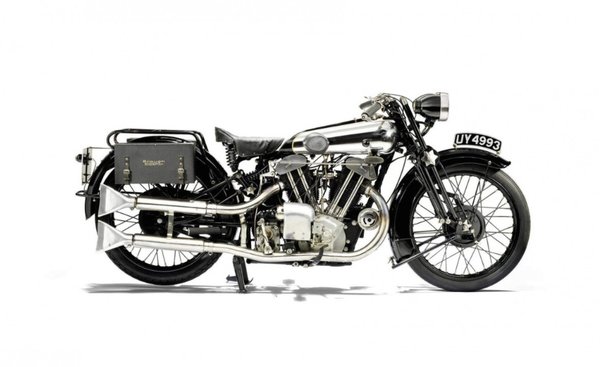 A Bonhams aukciósház tavaszi (április 27-28) árverését idén a V2-esek uralják, legalábbis ezektől várnak rekordbevételt. A nagyszínpados attrakció idén egy Brough Superior SS100 Alpine Grand Sports, amely a 20-as évek superbike-ja volt. Több hűséges és kitartó tulajdonos után került a mostani eladóhoz, aki 1986-ban restauráltatta.