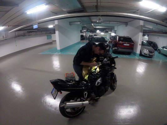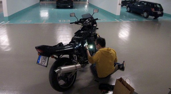 Ver engem a sors: egyik reggel éppen jöttem be dolgozni a Bandittal (ideális városi jármű :D) - szemerkélt az eső, éppen csak gurultam, adtam egy minimális gázt, majd hallottam egy halk "páng"-ot. Ó, adja isten, hogy ne a gázbovden legyen - gondoltam. De az volt.