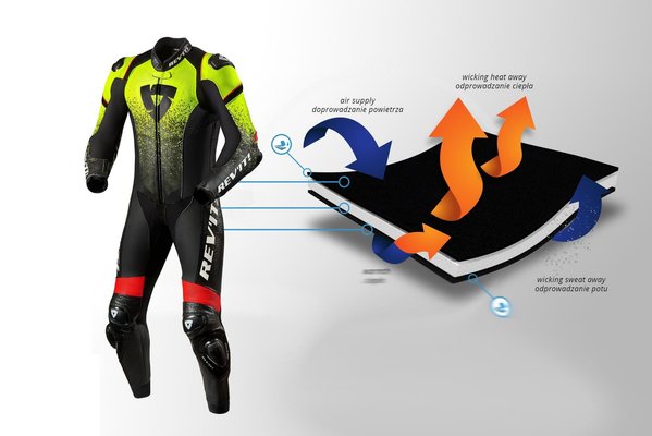 A Rev'it légzsákja elvileg vékonyabb és kevésbé melegíti a motorost, mint az eddigiek, ez utóbbi vélhetően a forró versenypályákon (pl. Sepang) jelent előnyt majd a motorversenyzőknek - állítólag 50%-kal több levegőt enged át. Szintén a világbajnokságok indulóit célozzák azzal, hogy a 25%-kal könnyebb a Rev'it légzsák, mint a konkurenseké.
