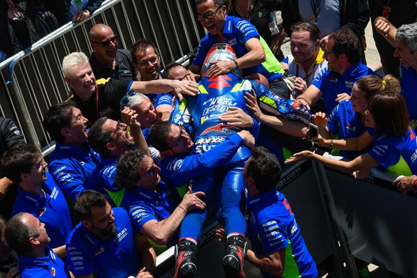 Mondhatjuk, hogy a versenyt követő ünneplés mindent elsöprő volt, a Suzuki csapat égbe repítette Rinst, de az ott dolgozók csaknem fele Rossi egykori yamahás alakulatából áll fel, Davide Brivio öccse Roberto – jelenleg a Suzukinak dolgozik ő is – egykor szinte Rossi legbelsőbb köreihez tartozott, így elkerülhetetlen volt, hogy az olasz egyenként ne pacsizzon le mindenkivel. A pódiumon végül Rossi gyermekkori kedvence, Kevin Schwantz ölelte keblére a kilencszeres világbajnokot. A Suzuki MotoGP diadalát tovább fényesítette, hogy az újjáéledő amerikai Superbike bajnokság mindkét futamát a Yoshimura Suzuki nyerte, az egykori GP menő, Moto2 világbajnok Toni Eliasnak, valamint az újdonsült közönségkedvencnek, Josh Herrinnek köszönhetően.