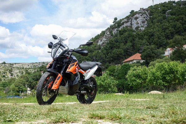 Már az országúti csavargás során kiderült, hogy a 790 Adventure kellemes túramotor, hiába karcsú, az ülés kimondottan kényelmes, az üléspozíció is laza, a szélvédelem is megfelelő - a plexi két pozícióban állítható, viszont ehhez szerszám kell, úgy látszik, a 1190 Adventure pofonegyszerű és praktikus kallantyús szélvédőállítását nem örökítették tovább. Kár érte, azt kis gyakorlattal menet közben is lehetett finomhangolni.