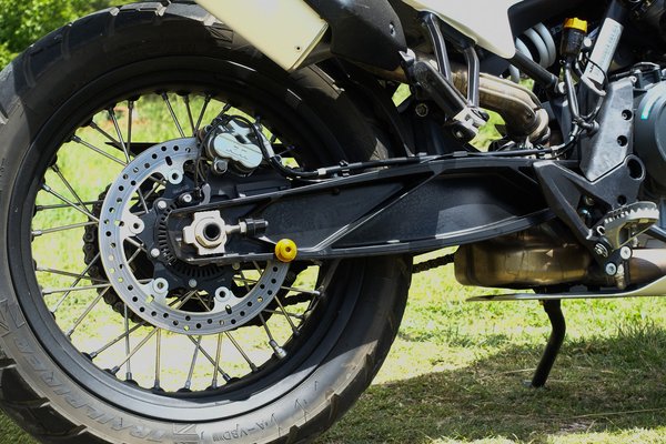 Szempont volt még az egyszerű szerelhetőség - ha valami, akkor ez például soha nem volt igaz az egykori, máig visszasírt 950/990-esekre, viszont a KTM LC8c blokkja (a c azt jelenti, kompakt) egyrészt sokkal kevesebb alkatrészből áll, másrészt építési filozófiáját tekintve már a japán motorokat idézi. Viszont tényleg nagyon kompakt, aminek az Adventure szempontjából két fontos hozadéka van: kellemesen keskeny motort tudtak építeni hozzá, és a lehető leghosszabb lengővillát lehetett a használni, ezek jót tesznek a kezelhetőségnek.