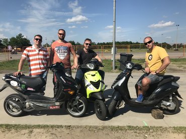 Zoli: a kopasz zseni, aki egy évvel ezelőtt ezt az egészet elkezdte, és összehozott bennünket. Azóta szerintem milliószor átgondolta, hogy miért is minket hívott, de mindig rájön, hogy mert van bennünk közös. Az, hogy amióta indultunk a Totalbike24-en robogókkal álmodunk, és halljuk a zümmögésüket.