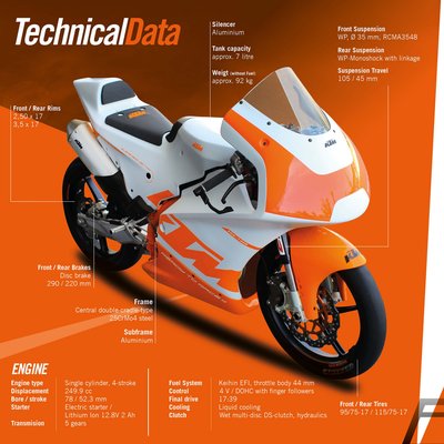 Amikor a Dorna jelezte a nagy motorgyártók felé, hogy egy új tehetségkutató sorozatot indítana, a KTM azonnal lecsapott a lehetőségre, és nekiláttak egy könnyű, belépő szintű versenymotort építeni - ebből lett a KTM RC4R.
