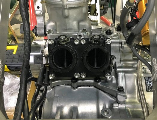 Ennyit az álmodozásról. Én annyit tettem, hogy a szokásos módon kukáztam, ami nekem nem kell, lásd boost-bottle, és szépen esztergáltam a lyukakba kettő passzentos kis dugót aluból, és visszatettem rájuk a szorító gyűrűket, amik régen a boost bottle-t tartottát a helyükön. Ezzel jelezve, hogy nem szándékozunk a motort az alsó fordulatszám-tartományban használni, sokkal inkább dolgozzon a bal lábunk, és tessék a megfelelő fordulaton tartani, hogy odébb lehessen állni vele. Amúgy a HRC is ezt a megoldást javasolta.