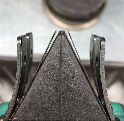 Ezen felül nem volt éppen szép a látvány, mikor kivettem a motorból. Sokkal inkább Dante poklának egy kétütemű verziója, mint valami, amit motorépítő a forgattyúsházban szeretne látni. Ennek a tudatában kezdtem el keresgélni a piacon valami helyettesítő megoldást, meg persze szem előtt tartva néhány tényezőt, mely szerint az én blokkom kicsit komolyabb lélegeztetést kíván, mint amire gyárilag készültek a srácok a Hondánál, illetve a nagyon hegyes gázreakcióra/fordulatszámejtésre hajtok. Vannak sokan, akik csinálnak mindenféle, a gyárinál nagyobb áramlású szelepeket, nekem csak az volt velük a bajom, hogy nagyon emlékeztettek a gyárira. Értsd, overmolded design volt szinte mind. Az annyit tesz, hogy fognak egy fém házat, és arra egy bizonyos fröccsöntési eljárással öntenek még némi műanyagot, így kiadja a gúla profilt, és így költségkímélőbb is megmunkálni, plusz a szelep élettartamának is jót tesz, ha nem egy relatíve kemény felületre (fém) kell mindig visszazárjon, hanem egy finom műanyag (régen a Yamahánál neoprén) felületen kell tömítsen. A műanyag/kompozit szelepeknek amúgy is van egy jellemző meghibásodásuk/elhasználódásuk amit "chipping"-nek hívunk, ami a szelepek záró élén az anyagfáradás során fellépő kitöredezés egyszerű megnevezése.